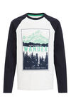 Een regular fit T-shirt van katoenmix met een opdruk. Het model heeft een ronde hals en lange, contrasterende mouwen.