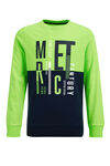 Een regular fit T-shirt van katoenmix met een opdruk en colourblocking. Het model heeft een ronde hals en lange mouwen met geribde boorden.