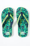 Een paar teenslippers van rubber met dessin en een geribde zool voor grip.