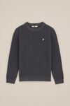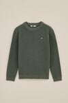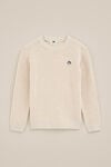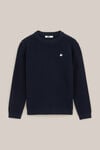 Zacht van binnen, stoer van buiten. Deze trui met structuur heeft een ronde hals, lange mouwen en een subtiel logo op de borst.