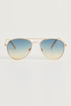 Een UV-bestendige zonnebril van metaal met gekleurde glazen.