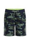 Een regular fit zwembroek van gerecycled polyester met een dessin en opdruk langs de zijkant. Het model heeft een gevoerd front en een elastische taille met drawstrings.