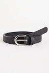 Twee polyurethaan ceinturen met metalen gespen en glitter, in één set.