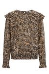 Een regular fit blouse van viscose met dessin en ruches. Het model heeft een ronde hals met knoopsluiting en lange mouwen.