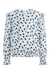 Een regular fit blouse van puur viscose met een dessin en volants. Het model heeft een ronde hals, een knoopsluiting op het achterpand en lange mouwen met gesmockte boorden.