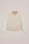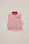 Sportief, speels en supertrendy. Dit bomberjack heeft een regular fit, een bomberkraag, lange mouwen en een drukknoopsluiting. Op de borst staat de geborduurde tekst “Team Blue”. De rug is versierd met een print van padelrackets in hartvorm en bijpassende tekst.