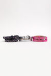 Een set van drie ceinturen van polyurethaan met een metalen gesp.