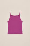 Simpel, comfortabel en helemaal klaar voor de zomer. Deze cropped tank top heeft een vierkante halslijn en dunne bandjes. De subtiele rib geeft iedere outfit net iets extra's.