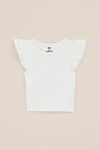 Deze slim fit top is gemaakt van een elastische katoenmix en heeft een trendy ribstructuur en cropped fit. Bovendien beschikt het item ruches op de schouders en een ronde hals.