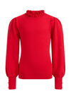 Een regular fit trui van een katoenmix met ruches en sierknopen op de mouwen. Het model heeft een ronde hals en geribde boorden.