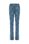 Een broek van een viscosemix met een all-over dessin, een elastische tailleband en wijduitlopende pijpen.