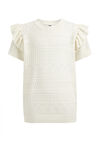 Een regular fit T-shirt van katoenmix met een opengewerkt dessin en ruches. Het gebreide model heeft een ronde hals en korte mouwen.