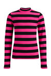 Een nauwsluitend T-shirt van katoen met toegevoegde stretch, een streepdessin en een ribstructuur. Het model heeft een ronde hals en lange mouwen.