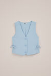 Trendy, vrolijk en lekker makkelijk te combineren. Deze gilet heeft een regular fit met een V-hals en knoopsluiting aan de voorkant. Aan de zijkanten zit elastiek voor een fijne stretch, en het strikje maakt het helemaal af.