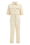Een regular fit jumpsuit van katoen met twee borstzakken en twee steekzakken. Het model een normale kraag, korte mouwen en taps toelopende pijpen. De jumpsuit heeft een ritssluiting.