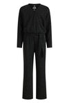 Een regular fit jumpsuit van lurex met glitter, een ceintuur en een drukknoopsluiting. Het model heeft een V-hals, lange mouwen en wijde pijpen.