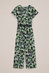 Heeft een regular fit, ronde hals en korte mouwen, elastiek in de taille met ruches, all over kleurrijke print en heeft rechte pijpen. Heeft een enkele knoopsluiting op de rug en van 100% katoen.