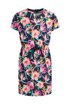 Een regular fit jurk van katoen met een dessin en elastische taille met aantrekkoordjes. Het model heeft een ronde hals en korte mouwen.