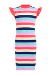 Een nauwsluitende jurk van katoenmix met een streepdessin en ribstructuur. Het model heeft een ronde hals en korte mouwen met ruches.