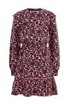Een regular fit jurk van een katoenmix met dessin en volant. Het model heeft een ronde hals, lange mouwen en elastische taille.
