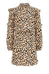 Een regular fit jurk van een fijne kwaliteit met dessin en ruches. Het model heeft een opstaande, gesmokte kraag, lange mouwen en elastische taille.
