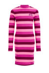 Een regular fit jurk van een katoenmix met streepdessin. ribstructuur en embroidery. Het model heeft een opstaande hals en lange mouwen,