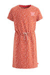 Een regular fit jurk van elastisch katoen met een dessin, een embroidery op de borst en aantrekkoortjes in de taille. Het model heeft een ronde hals en korte mouwen.