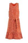 Meisjes loose fit jurk van puur katoen met een dessin. Het model heeft een ronde hals, een afneembare strikceintuur en een geplooide onderkant.