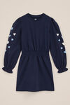 De favoriet van elk meisjes. Deze jurk heeft een ronde hals, een comfortabele gesmokte tailleband en contrasterende mouwen met trendy borduursels – voor een look die net zo vrolijk is als zijzelf.