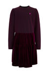 Deze regular fit velvet jurk is perfect voor feestelijke gelegenheden. Het model heeft glittergaren, een ronde hals, elastische taille en lange mouwen.
