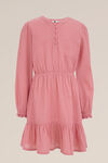 Er is geen twijfel over mogelijk; dit is dé must-have voor meisjes. Deze regular fit jurk is gemaakt van katoen en heeft een structuur, knoopsluiting en volant. Ook is dit trendy item voorzien van een ronde hals en lange mouwen met kanten boorden.