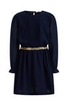 Een regular fit jurk van gerecycled polyester met plooien op de bovenkant, een all-over structuur en pailletten bij de elastieke tailleband. Het model heeft een ronde hals met een knoopsluiting en lange mouwen.