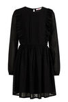 Een regular fit jurk van geweven kwaliteit met een structuur, volant en een knoopsluiting. Het model heeft een ronde hals en lange mouwen.