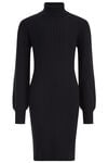 Een slim fit jurk van een viscosemix met ribstructuur. Het model heeft een col en lange mouwen.
