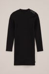 Een must-have voor elk meisje. Deze slim fit jurk heeft een ronde hals en lange mouwen. De ribstructuur zorgt voor comfort en stretch, terwijl de knoopjes op de schouder zorgen voor een speels detail.