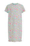 Een regular fit nachthemd van een katoenmix met stretch met een all-over stippen- en ijsjesdessin en een glitteropdruk op de borst. Het model heeft een ronde hals, korte mouwen en ruffles aan de onderkant.