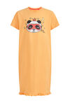 Een regular fit nachthemd van een katoenmix met fijne stretch. Het model heeft een ronde hals, korte mouwen, een glitteropdruk op het voorpand en ruffles aan de onderkant.