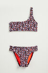 Een gevoerde bikini van een polyamidemix met een all-over bloemendessin. De bikinitop heeft één onbedekte schouder.