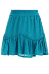 Een regular fit rokje van geweven kwaliteit met een dessin, glittergaren en volants. Het model heeft een gesmokte tailleband.