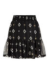 Een regular fit rok van geweven kwaliteit met een dessin, glittergaren en gesmokte taille. Het model heeft een binnenrok.