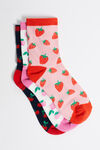Een set van drie paar, fijngebreide sokken van een katoenmix met een dessin en een elastische, geribde boord.
