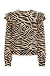 Een regular fit sweater van een katoenmix met dessin en ruches. Het model heeft een ronde hals en lange mouwen.