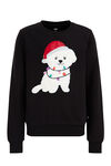 Een regular fit sweater van katoen met een opdruk met pailletten en imitatiebont. Het model heeft een ronde hals en lange mouwen.