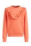 Een regular fit sweater van een katoenmix met ruches en een fleecevoering. Het model heeft een ronde hals en lange mouwen.