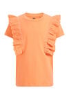 Een regular fit T-shirt van katoenmix met broderie anglaise en ruches. Het model heeft een ronde hals en korte mouwen.