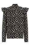 Een nauwsluitend T-shirt van katoenmix met dessin en ruches. Het model heeft een ronde hals en lange mouwen.