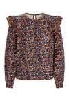 Een regular fit T-shirt van een katoenmix met dessin en ruches. Het model heeft een ronde hals met knoopsluiting en lange mouwen.