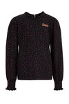 Een regular fit T-shirt van een katoenmix met dessin en embroidery. Het model heeft een ronde hals met een knoopsluiting en lange mouwen met ruches bij de boorden.