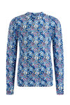 Een nauwsluitend T-shirt van een viscosemix met een dessin. Het model heeft een opstaande hals en lange mouwen.