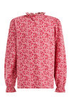 Een regular fit T-shirt van een katoenmix met een dessin en ruffles. Het model heeft een ronde hals en lange mouwen.